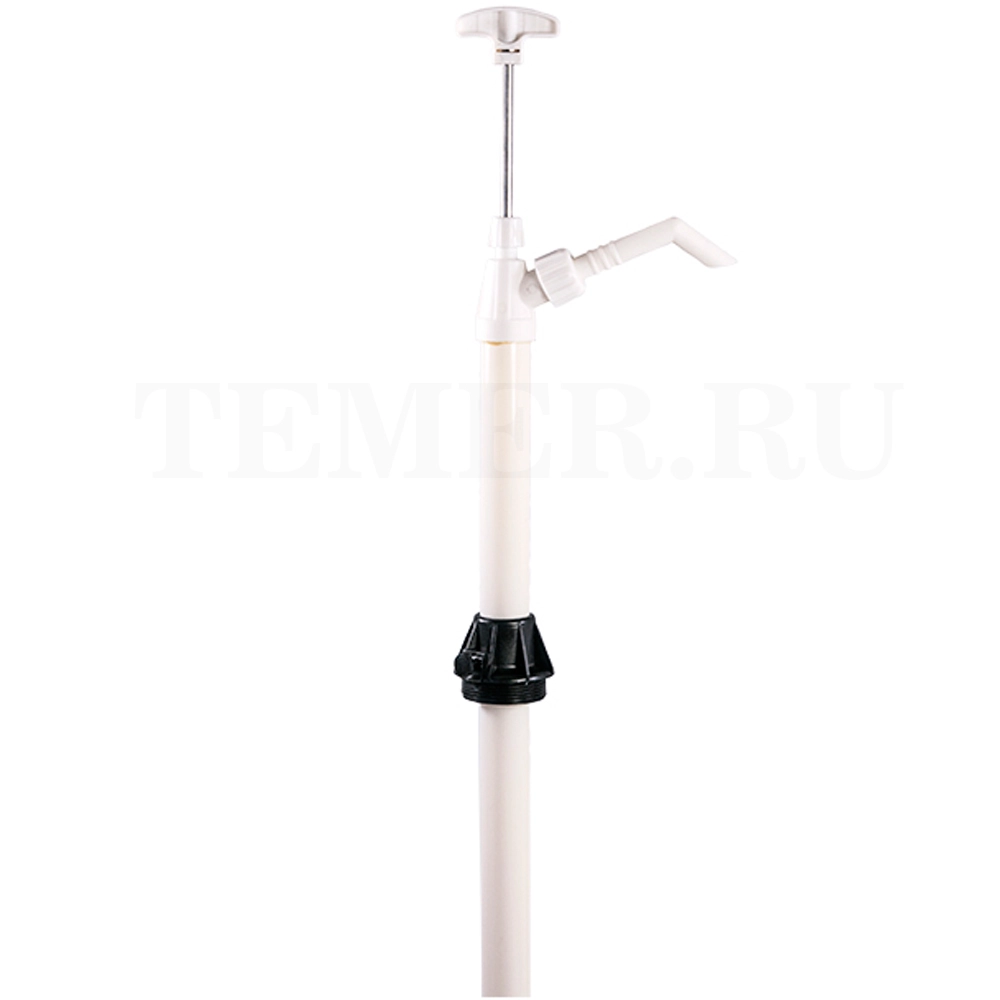 Насос подъемного действия предназначен для перекачки химикатов. Корпус и всасывающая трубка насоса изготовлены из белого нейлона, прокладки из ПТФЭ, поршень из нержавеющей стали, длина всасывающей трубки 1000 мм для использования в бочках объемом 60 л или 208 л.