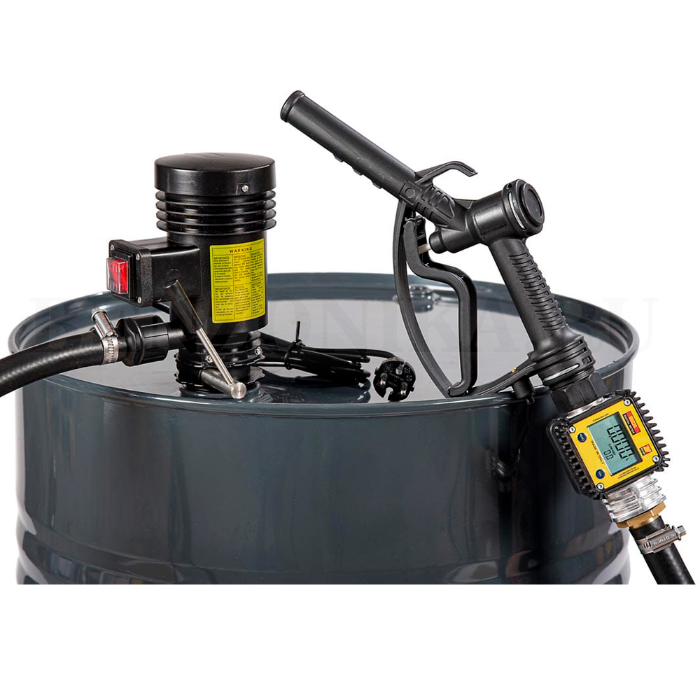 Характеристики* Бочковой комплект 220В для дизтоплива, ручной кран, счетчик, 40 л/мин