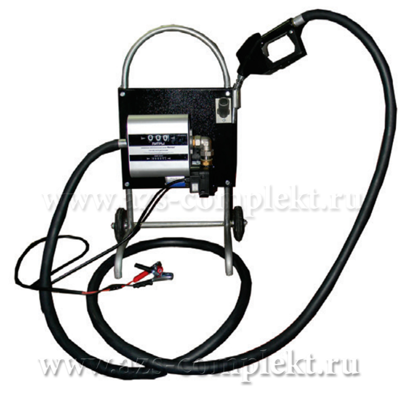 Электронасосный блок Benza 28-12-40Р для перекачки и раздачи топлива установленный на двухколесной тележке.