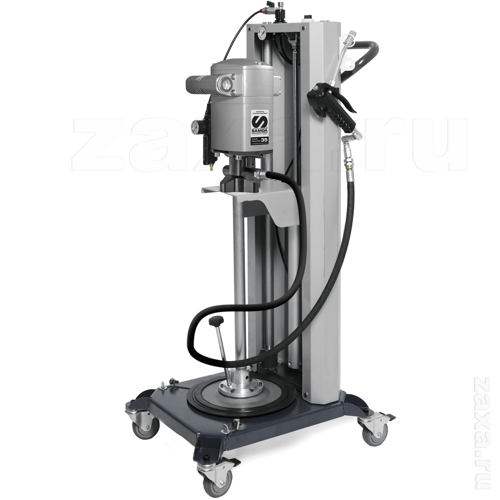 - Установка подходит для бочек 12-20 кг и включает в себя насос Samoa 530630 для консистентной смазки PumpMaster 35 с коэффициентом сжатия 60:1;