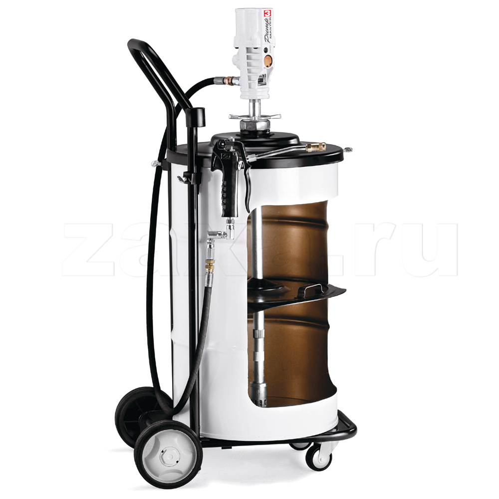 SAMOA 425150: Пневматический поршневой солидолонагнетатель с насосом PumpMaster 3 с тележкой и с опорой для бочек 50 кг состоит из: