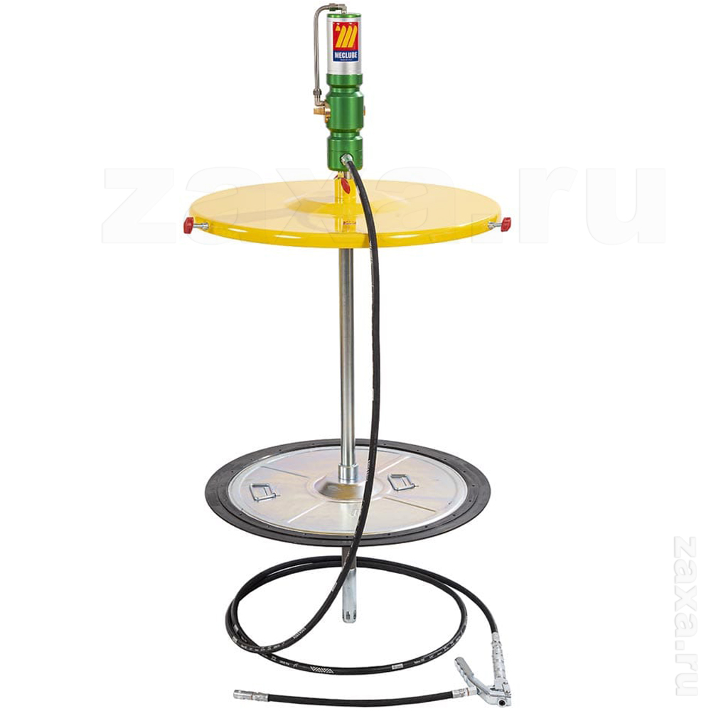 Комплект для раздачи густых смазок, 100:1. В комплекте: насос, крышка для бочки, следящая пластина, шланг 3 метра и пистолет для смазки с гибким носиком и 4-х лепестковым соединителем. Производительность: 1000 г/мин.