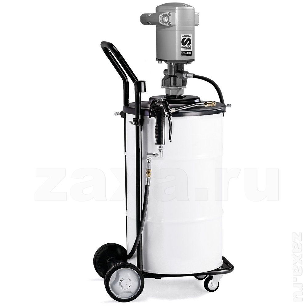 SAMOA 423160 Мобильный пневматический солидолонагнетатель на базе насоса PM35 для бочек 50 кг производства Испании предназначен для раздачи консистентной смазки до NLGI-2.