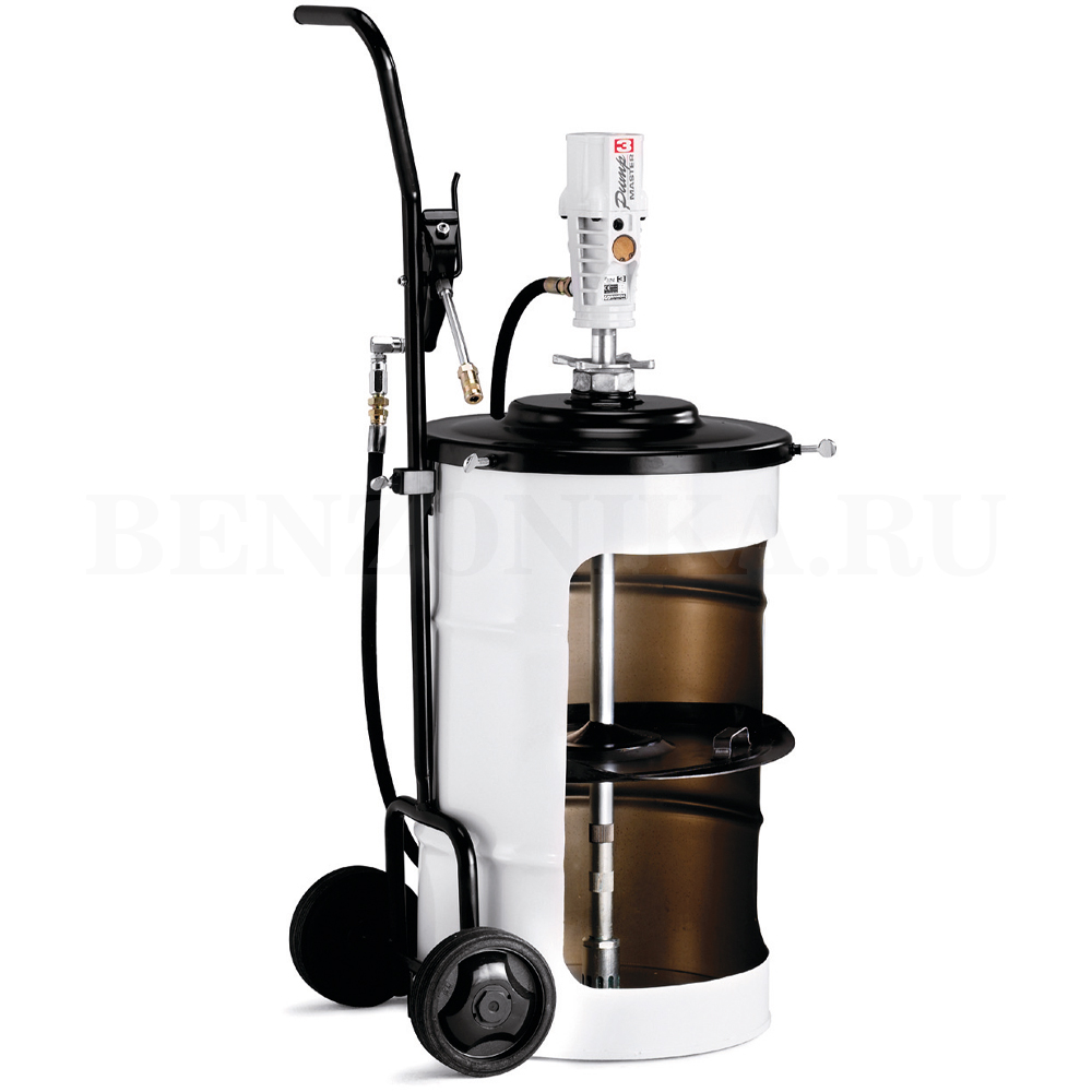 Мобильный пневматический солидолонагнетатель с насосом PM3 с тележкой и крышкой для бочек 50 кг.