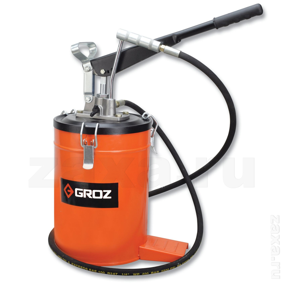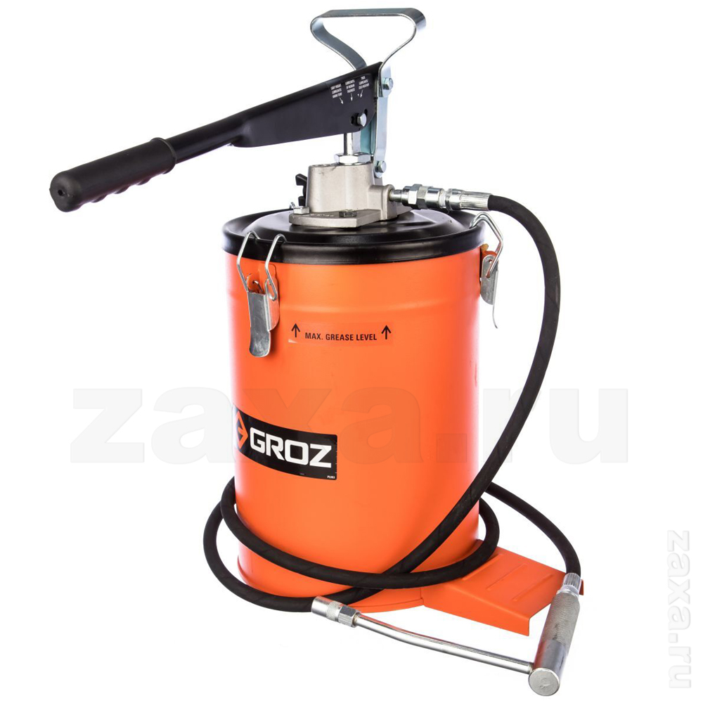 Ручной нагнетатель смазки с ножной опорой с баком 10 кг GROZ GR44281 купить в разделе: Ручные поршневые насосы для смазки / Насосы GROZ (Индия)
