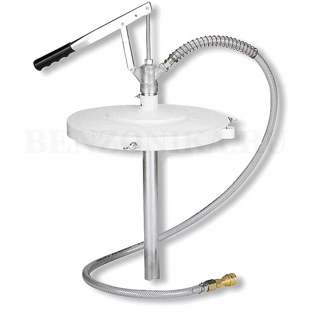 Рычажный ручной насос Samoa 108503 для заполнения централизованных систем смазки, бочки 50 кг. Включает крышку бочки 405 мм. Насос среднего давления с рычажным механизмом со шлангом длиной 1,5 метра и гидравлическим соединителем 2-HK (1/4") для заполнения резервуара централизованных систем смазки. Включает насос, крышку, шланг и гидравлический соединитель. Инструкция: 830803.