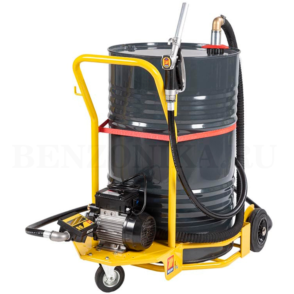 Комплект оборудования предназначен для раздачи масла в местах, в которых присутствует розетка электросети. Опора с тележкой и держателем бочки, шланги, кран со счетчиком. Самозаливающийся насос с двигателем переменного тока на 220В, степень защиты IP55. Производительность до 50 л/мин.