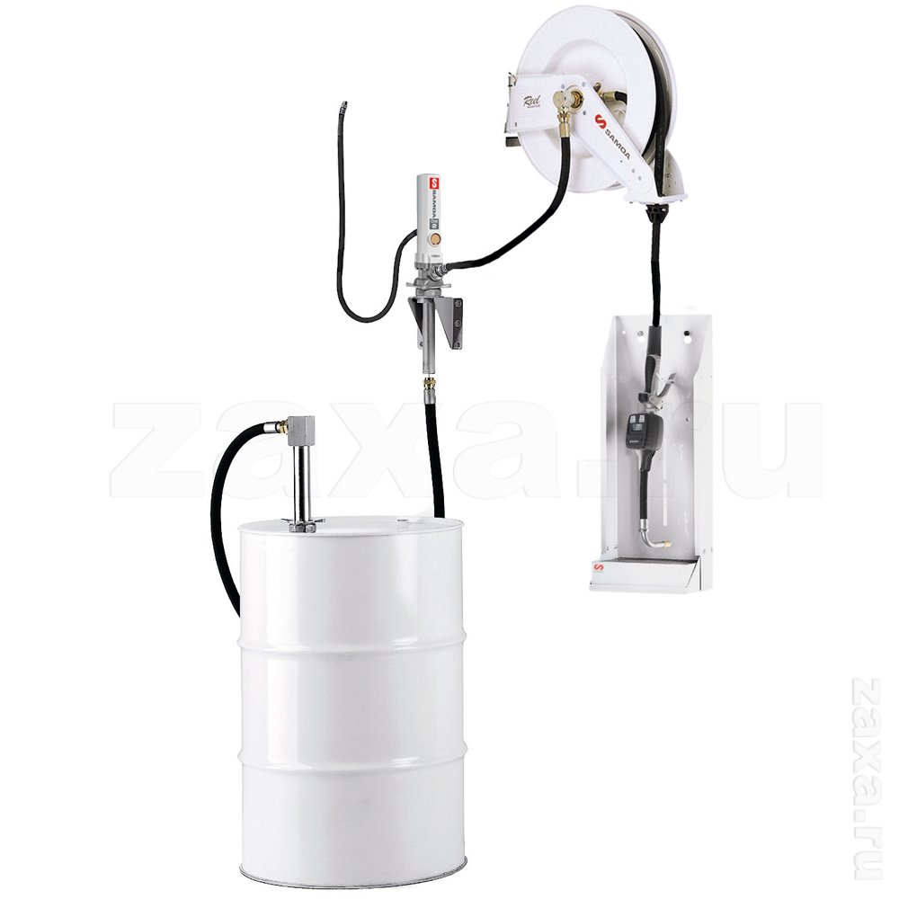 Полный комплект SAMOA 454653 для бочек 205 л . Включает все аксессуары для установки и подключения источника сжатого воздуха, с открытой катушкой со шлангом 10 м.