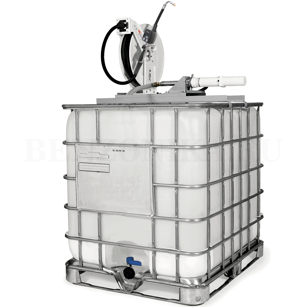Комплект с насосом Pumpmaster 2 и с креплением на еврокуб 1000л предназначен для перекачки масла под средним давлением с высокой скоростью. Насос и катушка монтируются сверху еврокуба.