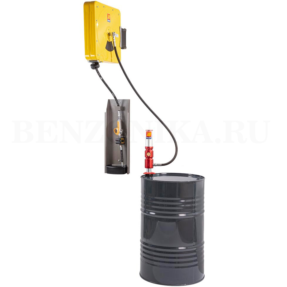 Комплект для раздачи масла на базе пневматического поршневого насоса и закрытой шланговой катушки с креплением на стену. Комплект предназначен для выкачивания/раздачи масла из бочек объемом 200 литров (180-220 кг). Производительность 30 л/мин.