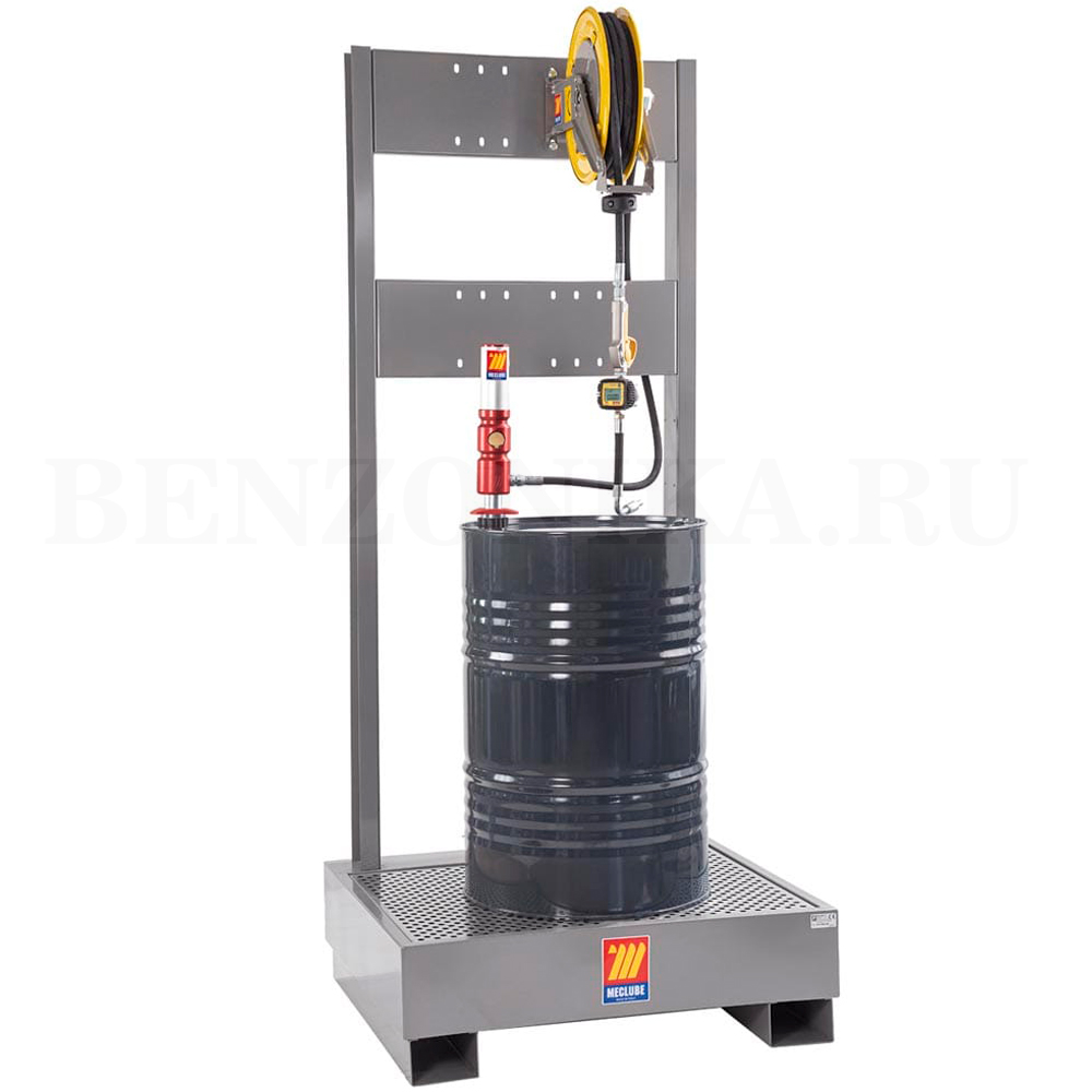 Стационарные установка Meclube 023-1935-000 для раздачи масла из бочки 180-220 литров на базе пневматического поршневого насоса R=3:1. Производительность 30 л/мин.