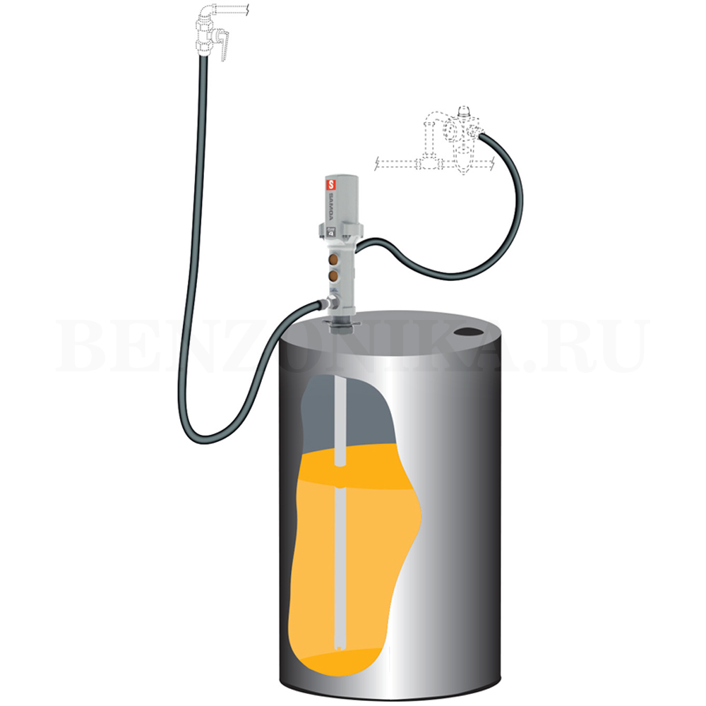 Пневматический насосный комплект SAMOA 379404 предназначен для перекачивания масла из бочек 205 л (185 кг) с насосом PM4 3:1, монтаж на бочку.