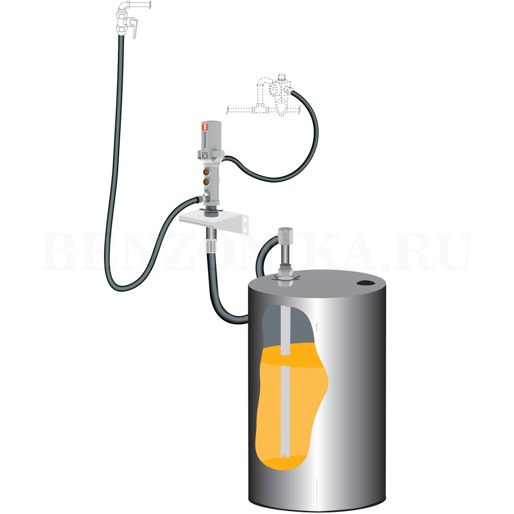 Комплект SAMOA 379500 для откачки масла из бочки 205 л с коэффициентом сжатия 5:1 с монтажом на стену. Настенный насос PM4 и комплект для перекачки позволяет быстро и без утечек заменить бочку.