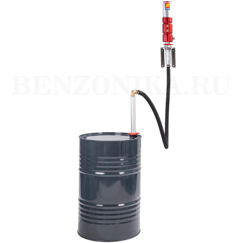 Пневматический поршневой комплект Meclube 022-1217-000 для раздачи масла, с креплением пневматического поршневого насоса на стену. Комплект предназначен для выкачивания/раздачи масла из бочек или ёмкостей объемом 700-1000 литров.