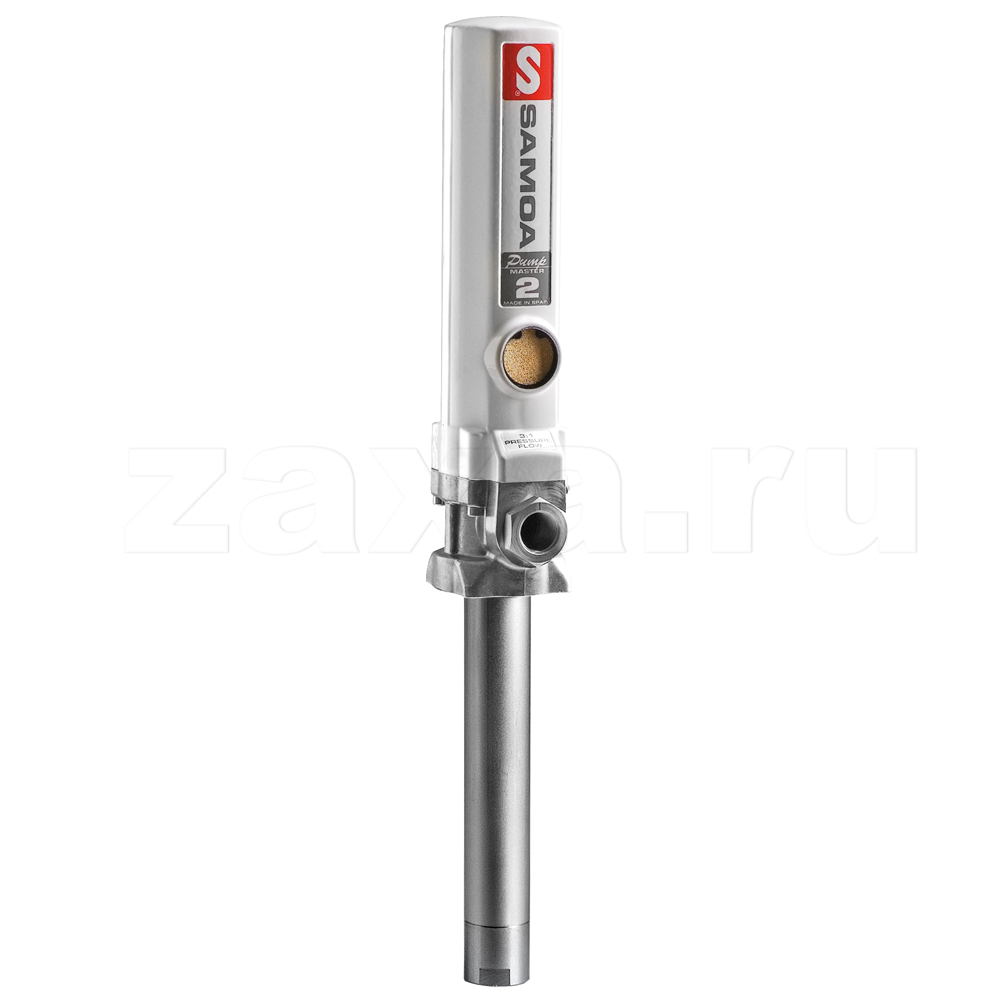 Пневматический поршневой насос SAMOA 353120 двойного действия для раздачи смазочных материалов из переносных установок, комплектов для раздачи масла и небольших установок. Насос PumpMaster 2 Предназначен для перекачки любых смазочных материалов, в том числе, высокой вязкости. Насос имеет регулируемый по высоте переходник 2" BSP (M) для монтажа на емкость или бочку и отверстие для монтажа разгрузочного клапана давления (номер детали 609007).