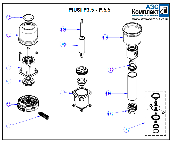 | Запасные части пневматического насоса F0021400A PIUSI P3.5 ST | |||