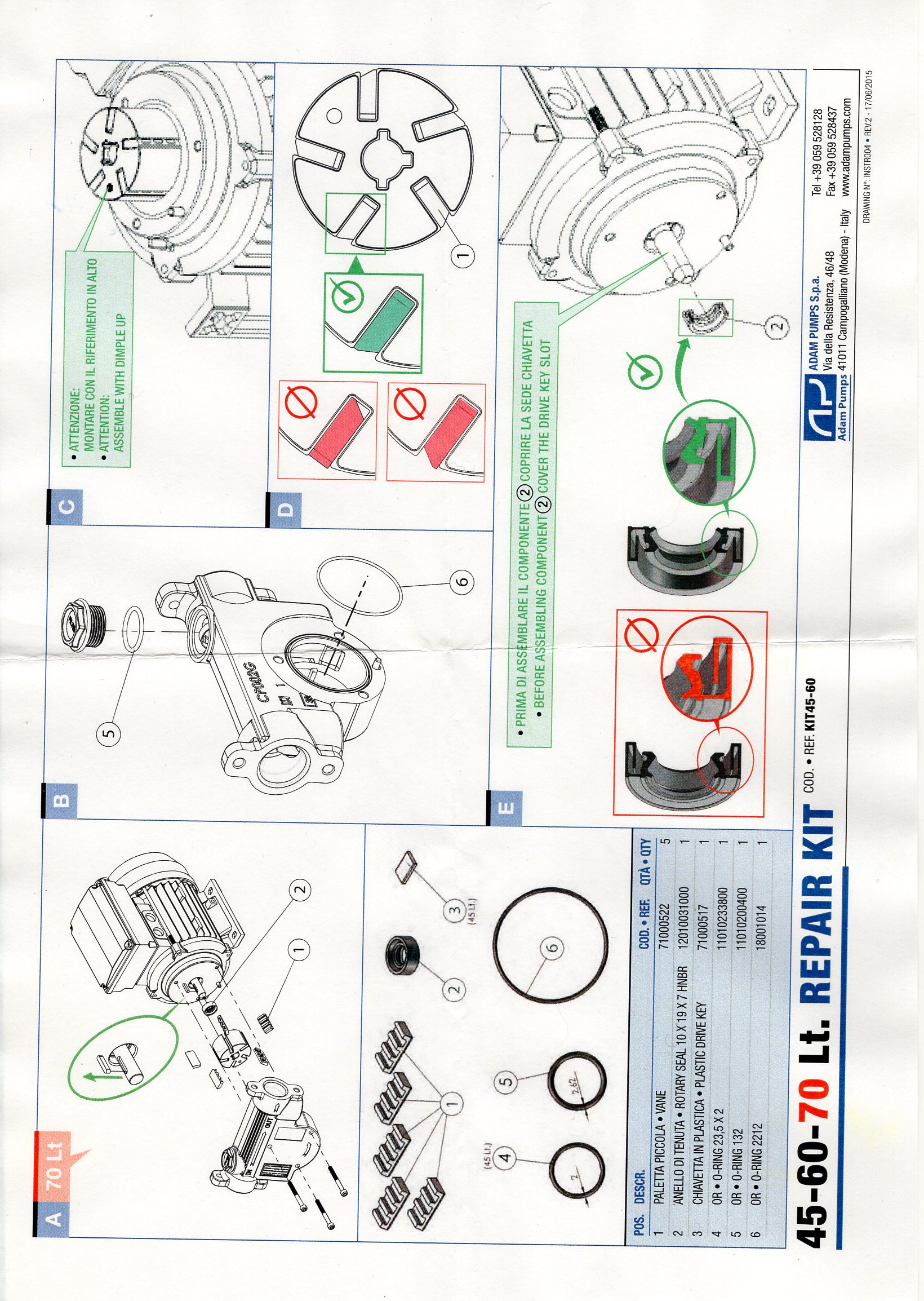 Adam Pump Ремкомплект для насосов, KIT45-60