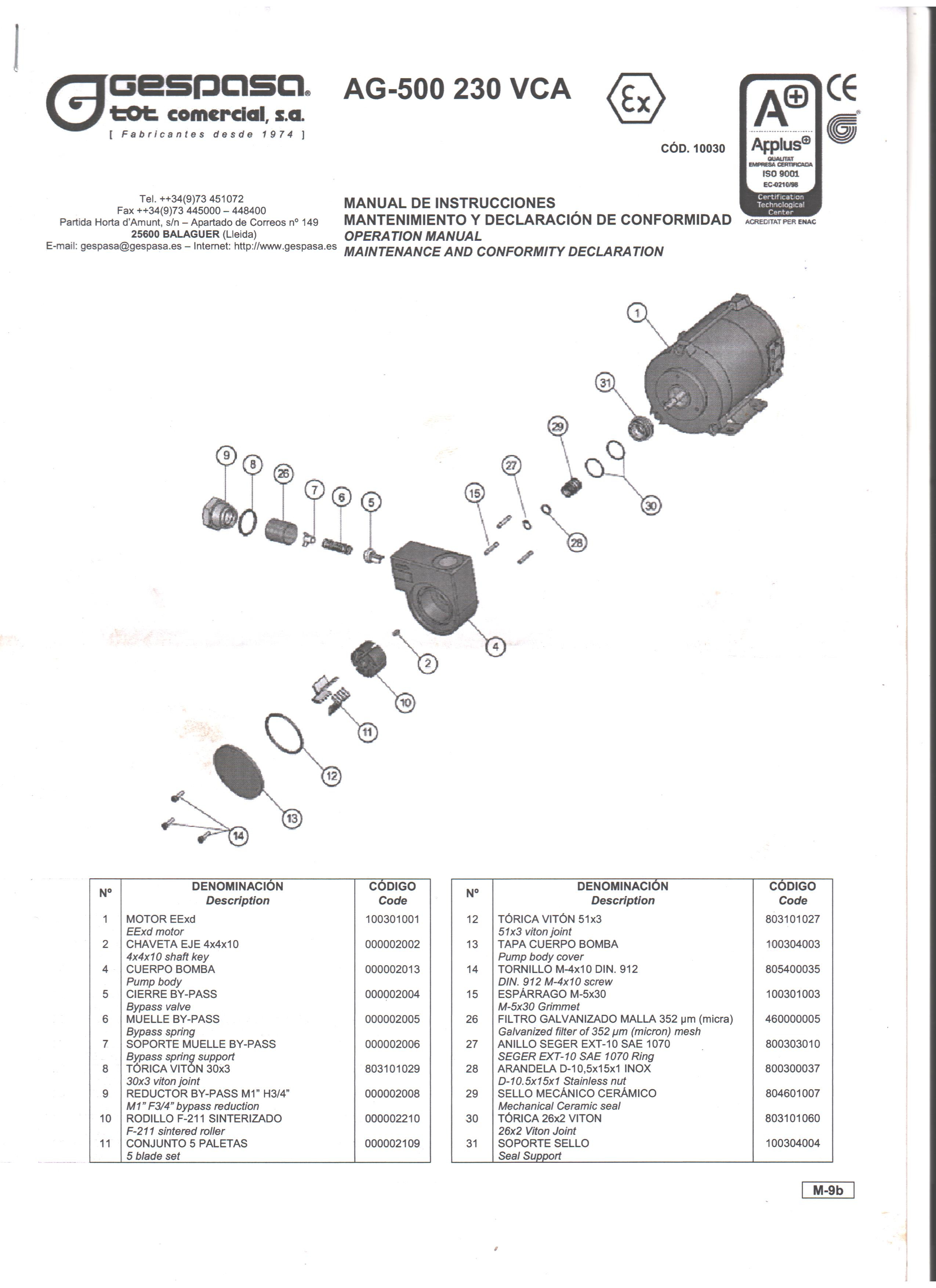 Gespasa Торцовое уплотнение к насосу AG-500 230 VCA, 804601007