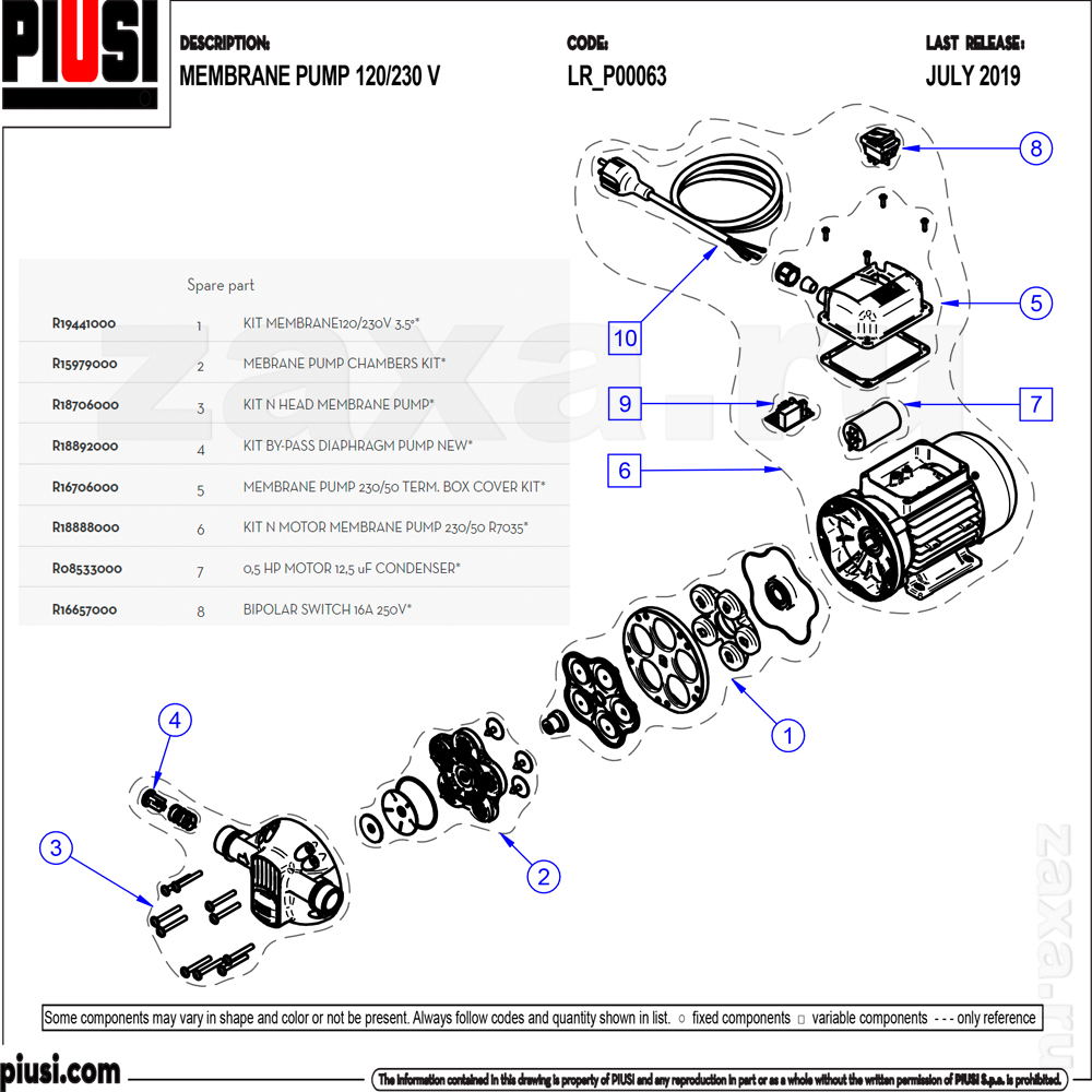 R15979000 Piusi (Италия) - Комплект мембраны насосной камеры насоса Piusi SuzzaraBlue AC 220V. Запчасти для насоса.