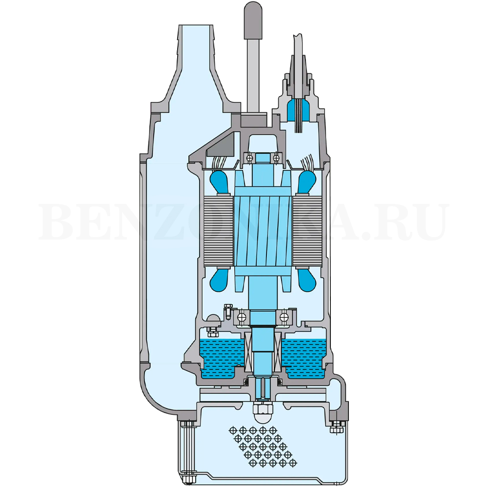 Корпус насоса изготовлен из износостойкого чугуна. Благодаря использованию в конструкции механического уплотнения, устойчивого к высокому давлению, увеличена возможная глубина погружения насоса. Насос оборудован встроенной термозащитой (ниже 15 кВт.).